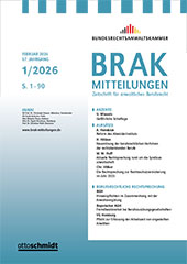 Die BRAK-Mitteilungen geben als Fachzeitschrift der Bundesrechtsanwaltskammer einen Überblick über aktuelle berufspolitische und berufsrechtliche Entwicklungen. Sie enthalten zudem amtliche Bekanntmachungen, insbesondere von Änderungen der Berufsordnung für Rechtsanwälte (BORA) und der Fachanwaltsordnung (FAO). Als Beilage berichtet das BRAK-Magazin aus der Arbeit der Bundesrechtsanwaltskammer und informiert über praxisbezogene Themen sowie interessante Veranstaltungen für Anwältinnen und Anwälte.